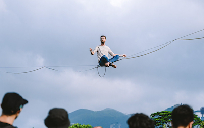 1- Sur un fil, acrobaties et haute voltige : Avec “Les Traceurs”, Nathan Paulin défie les lois de la gravité et renoue avec l’histoire aérienne du Hangar Y