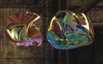Les Maeves sont des suspensions qui réfléchissent la lumière et créent des jeux de couleurs et d’ombres. Ces œuvres résonnent avec l’environnement, habitant l’espace dans un jeu subtil d’apparition et de disparition. Le processus de création s’appuie sur les techniques d’art verrier, comme le soufflage et le thermoformage. Les reflets iridescents créés par ces vitraux contemporains, comme des gouttes, seront portés par la voix douce et la musique de Léa Petges afin d’inspirer la méditation et une spiritualité profonde.