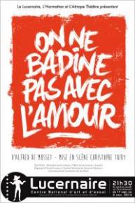 On ne badine pas avec l’amour Auteur : Alfred de Musset Mise en scène de Christophe Thiry Avec Francis Bolela, Stanislas De La Tousche, Lucile Durant, Sébastien Ehlinger, Marion Guy, Pierre Marzin, Koso Morina et Anna Sorin Du 17 septembre au 2 novembre 2014 Tarifs : Réservation en ligne ou par tél. au 01 45 44 57 34 (Du lundi au vendredi : 10h30-12h30 / 13h30-22h Durée : 1h30 Le Lucernaire |