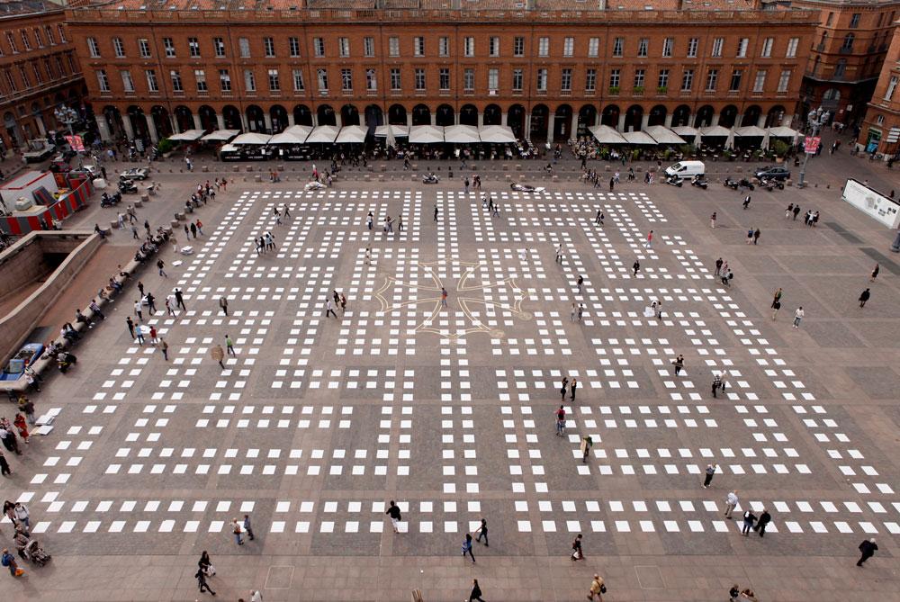 Renouvelant l’art du tag, il intervient sur le sol dans les années 2000, disséminant des « boussoles » au gaffer blanc sur le bitume pour donner de nouveaux repères à la ville. Pour envahir l’espace urbain, il développe un nouveau système avec ses « toiles errantes », sept toiles qu’il fait voyager et qu’il installe dans un espace choisi le temps de les photographier, aux quatre coins du monde. Plus tard, il réalise des empreintes de plaques d’égout dans la rue, collectionnant à la fois leurs formes et leurs coordonnées géo-spatiales pour créer une cartographie de ces déplacements dans le monde.