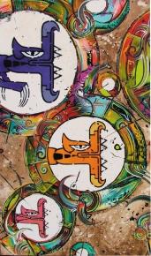 Issu de la culture urbaine, je m’engage peu à peu dans une recherche plus personnelle en m’inspirant majoritairement de mes émotions vécues au travers d’une période aléatoire de mon quotidien. Je décline spontanément l’alliance des coups de couteaux, des volutes, des codes couleurs et la gestuelle me permettant de tendre vers les chemins de l’abstraction lyrique.
