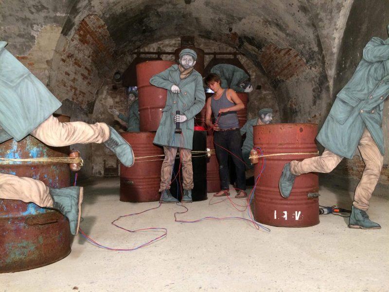 À peine arrivés en Alsace, sur le site du Mausa Vauban (Musée d’Art Urbain et du Street Art) qui ouvrira ses portes le 7 juillet, au cœur de la Citadelle Vauban de Neuf-Brisach (inscrite au Patrimoine Mondial de l’UNESCO, dont c’est la date anniversaire cet été) Levalet et Guy Denning ont été, avec Jérôme Mesnager, les premiers à investir le lieu pour réaliser chacun une oeuvre et une installation monumentales, dans les Casemates (salles de garde) qu’ils avaient choisies.