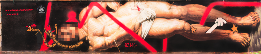 Ozmo est un précurseur des langages, médiums d’expressions et de styles, apprécié et reconnu internationalement pour ses recherches et son habileté à créer des peintures murales spécifiques au lieu et à l’époque actuelle, en créant un dialogue avec les contextes et les situations locales. Pour ce projet particulier, Ozmo a réussi à atteindre les caractéristiques esthétiques typiques d’une peinture à l’huile à l’aide de bombes, le tout en un peu plus de 4 jours de création.