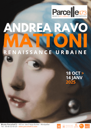 Le street artiste italien Andrea Ravo Mattoni expose une vingtaine d’œuvres sur toile (mais toujours peintes à la bombe) au musée Parcelle473 à Montpellier dans le cadre d’une exposition temporaire intitulée “Renaissance urbaine” du 18 octobre 2024 au 5 janvier 2025.