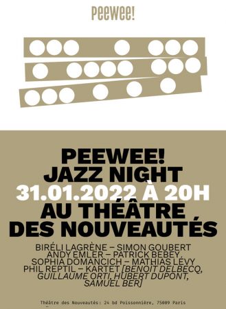 Le 31 janvier, dans le splendide écrin du Théâtre des Nouveautés et pour la première fois de sa nouvelle histoire, PeeWee! réunit en un concert événement un florilège d’artistes issus de son catalogue. Une soirée exceptionnelle où sera donné à entendre chaque musicien au cœur de son sujet ou dans des formules inédites, improvisées ou non.