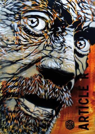 Lorsqu’il commence à peindre ses pochoirs à Paris en 2005, C215 fait d’emblée du portrait de sans-abris un genre de prédilection. « J’ai été l’un des tous premiers à explorer ce motif », rappelle-t-il. Son choix procède d’abord d’une nécessité intime : celle de donner à voir sa situation personnelle. « A l’époque, je vivais dans une précarité totale, je n’avais rien, aucun patrimoine, et touchais le RSA », explique Christian Guémy. La figure du « clochard » lui dessine en somme un horizon possible, et vient refléter sur les murs sa propre fragilité matérielle et psychique. « Le visage morcelé des clochards parlait de moi-même, explique-t-il, de ma personnalité morcelée, de mon identité brisée ». Mais pour C215, le SDF est aussi un motif plastique, sinon un topos pictural : sa « trogne» se prête particulièrement à la technique du pochoir, qui en fait saillir les traits creusés et les épais sillons. En révélant la force esthétique de ces visages cabossés, l’artiste inaugure un genre, dont les photographies de Lee Jeffries et, plus tard, les pochoirs de Jef Aérosol, offrent autant d’exemples. Au risque, suggère Christian Guémy, de réduire un fait social et psychiatrique en simple motif, et d’en vider la représentation de toute portée critique.