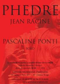 « L ’ amour déployé dans Phèdre est scandaleux. Quelque chose qui se cache et qui se montre à la fois. Rapprochement impossible des sexes. Je questionne Racine et il me répond, dans l’écriture. Dire, incarner, se souvenir, oublier, inventer Phèdre d’une seule voix. Se confier à la langue du poète d’un trait. Pour se souvenir il faut se confier à l’oubli je reprends à mon compte cette partie de la phrase de Maurice Blanchot comme point de départ et d’arrivée de l’interprétation du texte.» – P. Ponti « Porté par Pascaline Ponti, le poème dramatique a rarement résonné avec une telle générosité. La Poétique d’Aristote recule d’une case : le drame devient le récit, le chant qu’il porte en lui. Tout est emporté dans un mouvement continu, d’avancées et de retraits, d’élans et de retenue. La comédienne n’illustre jamais, ne sépare pas les personnages, elle les enchaîne comme les diverses faces d’une même pensée. Elle se laisse traverser par eux, et ils nous parviennent. Elle le fait, si l’on peut dire, avec une passion tranquille, sans le moindre effet ni artifice. Phèdre signifie, justement, l’éblouissante . Pascaline Ponti ne cherche pas à éblouir : elle éclaire, et réchauffe la pièce de Racine. C’est fort, et beau.» – Christine Friedel, Le Blog du Téâtre |