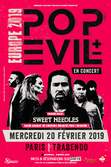 Suite à leur tournée d’été avec Poison & Cheap Trick, et de nombreux concerts en tête d’affiche en Amérique du Nord, POP EVIL débarque enfin en Europe au mois de février 2019 pour une tournée qui passera par l’Allemagne, la Grande-Bretagne, les Pays-Bas et la France !
