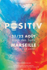 Pleiade Production et Allo Floride présentent la 4ème édition du Positiv Festival les 21 et 22 août prochains au Dock des Suds de Marseille. Après une édition 2014 d’anthologie, le festival revient cette année sur 2 jours consécutifs ! Programmation 2015 : Vendredi 21 août