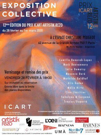 Depuis 12 ans, le Prix ICART Artistik Rezo encourage la découverte de nouveaux talents. Il récompense des artistes de moins de 35 ans résidant en France. Les 10 candidats sélectionnés participeront à une exposition collective au sein de l’Espace Christiane Peugeot à Paris du 29 février au 1er mars 2020.