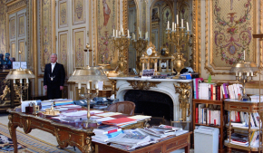 Du 7 au 14 janvier 2017 La Galerie Perrotin présente, pour la première fois à Paris, le film Elysée de Laurent Grasso, pour lequel l’artiste a obtenu l’autorisation exceptionnelle de filmer dans le Salon Doré, bureau du président de la République française. Après des avant-premières à Hong Kong, Séoul et Ajaccio (dans le cadre de l’exposition Paramuseum au Palais Fesch) et au moment où de nombreux candidats rêvent d’investir ce bureau, Elysée sera visible du 7 au 14 janvier 2017 à l’espace Saint-Claude de la Galerie Perrotin. Avec Elysée, Laurent Grasso propose une réflexion unique sur l’esthétique et la représentation du pouvoir. Véritable incursion dans les arcanes feutrés du Salon Doré du Palais de l’Elysée, le film fait surgir de l’ombre les objets passés et contemporains, le decorum de la fonction présidentielle. « Mon travail s’attache toujours à un point de départ dans le réel, qui permet d’offrir un support à l’imaginaire » déclare Laurent Grasso. La caméra frôle et scrute tous ces éléments avec une certaine intimité, provoquant un décalage et un télescopage temporels. Produite à l’invitation des Archives nationales en 2016, à l’occasion de l’exposition Le Secret de l’état, et tournée avec une véritable équipe de cinéma, ce film est le premier d’une série que Laurent Grasso souhaite consacrer aux lieux du pouvoir. La musique originale du film a été composée par Nicolas Godin, l’un des deux membres du groupe Air. Comme souvent dans son travail, Laurent Grasso explore d’autres champs/domaines de recherche, historiques et scientifiques. Le film s’inscrit dans la logique des « Deux Corps du Roi » formulée par Ernst Kantorowicz : celle d’une continuité du pouvoir au-delà de son incarnation par un individu. Le Salon Doré du Palais de l’Elysée, lieu de travail du Président de la République française, devient le sujet central d’un espace hautement symbolique et propice à l’imaginaire. Avec élégance et intensité, Elysée de Laurent Grasso s’interroge sur les multiples facettes du pouvoir, objet opaque et éblouissant.