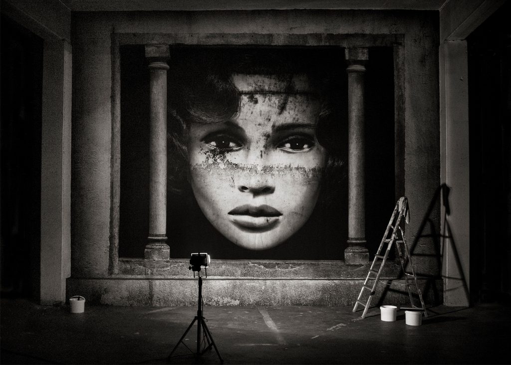 “C’était très important pour moi de recréer mon travail de rue, pour que les gens qui ne le connaissent pas, ou ceux qui l’ont aperçu uniquement sur les réseaux sociaux, puissent voir à quoi ressemblent mes installations, et qu’ils comprennent ma démarche. J’exploiterai la transparence du support pour créer un caisson lumineux : une fois la nuit tombée, la lumière illuminera le visage de cette E.Doll. “