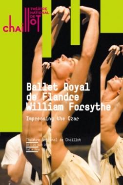William Forsythe a entretenu de tout temps une relation évidente avec son propre répertoire, donnant à danser quelques-unes des ses pièces phares à des compagnies avec lesquelles il entretient une relation de confiance. Le Ballet Royal de Flandre, compagnie néo-classique belge, est aujourd’hui dirigée par Kathryn Bennetts, venue de chez Forsythe, justement. Il n’en fallait pas plus pour que le maître accepte de lui confier Impressing the Czar, écrit à partir de 1987, et dont les cinq parties forment une oeuvre à l’énergie contagieuse. Empruntant à la fois à la forme de l’opéra-ballet et du musical américain de la grande époque des années 50, Impressing the Czar offre son lot de variations de danse classique revue et corrigée par Forsythe : pointe assassine des ballerines, cassure de l’axe de la silhouette, portés qui glissent sur la scène. Et surtout ce vertige dans la rapidité d’exécution. La danse de William Forsythe exige une technique irréprochable que les interprètes du Ballet Royal de Flandre maîtrisent à merveille. Impressing the Czar offre au regard du spectateur une débauche de scènes, entre tableaux vivants et hommage au music-hall. Morceau de bravoure de l’ensemble, la partie intitulée In the Middle, Somewhat Elevated est un précis de composition chorégraphique : sous deux cerises dorées suspendues, les danseurs passent d’un partenaire à un autre, réinventent le pas de deux, s’affrontent dans un simple collant à l’élégance intemporelle. On devine ainsi le mouvement à l’état pur, comme s’il parcourait la colonne vertébrale pour finir aux extrémités du corps du danseur. Le finale, avec toute la compagnie en costumes de school-girls, chemise blanche et jupe grise, a des allures de rituel improbable qui confine au chef-d’oeuvre.