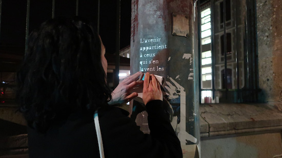 Petite Poissone est une street artiste, une poétesse de rue dont le travail est essentiellement basé sur le texte. Son humour caustique à l’anglaise et ses messages à double sens détournent le banal pour en révéler l’absurde ou le caché. Elle offre au public des textes courts, drôles et percutants, qui interrogent avec légèreté notre regard sur le monde.