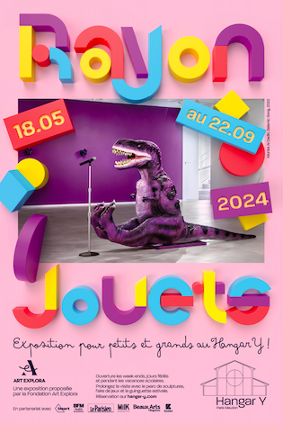 Comme dans les rayons d’un grand magasin, les jouets se suivent mais ne se ressemblent pas. Troisième exposition du Hangar Y et deuxième proposée par la Fondation Art Explora, Rayon Jouets est à destination de tous les publics. L’exposition rassemble certains des plus anciens jouets retrouvés dans le monde, aux côtés de pièces récentes pensées par des artistes contemporains de la scène internationale.