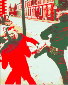 La rétrospective de Bernard Rancillac proposée à l’Espace Niemeyer par le Musée de La Poste. Actuellement fermé pour rénovation, réunit sur plus de 1300 m2 une centaine de pièces : peintures, objets, affiches, installations, collages… s’étalant de 1961 à 2015. Elle permet une approche complète et représentative du parcours de l’artiste né en 1931 et grande figure de la Figuration Narrative.[Belfast – Bernard Rancillac © Adagp, Paris, 2017] |