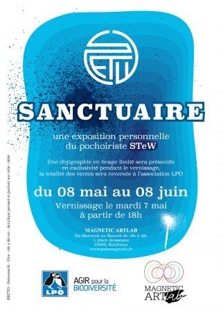 Après un passage remarquable et remarqué sur le M.U.R. de Bordeaux en septembre dernier, le pochoiriste STeW revient pour présenter une exposition personnelle inédite intitulée Sanctuaire, qui aura lieu du 8 mai au 8 juin à la galerie Magnetic ArtLab.