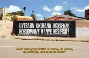 Connu pour ses Poèmes/Slogans qu’il peint en grand sur les murs ou les matelas abandonnés qu’il trouve dans la rue, c’est également lui qui est à l’origine de la mort de “Tintin au Congo”. Mais son travail est bien plus large et construit un ensemble de correspondances poétiques qui se décline sous différentes séries de travaux embrassant une multitude de médias : peinture / photographie / vidéo / sculpture / installation / performance / court­-métrage. Chaque travail constitue les pages fragmentées d’un journal intime ­ d’un carnet de voyage constitué comme un cocktail explosif d’images poétique qui questionnent et ne laissent personne indifférent.