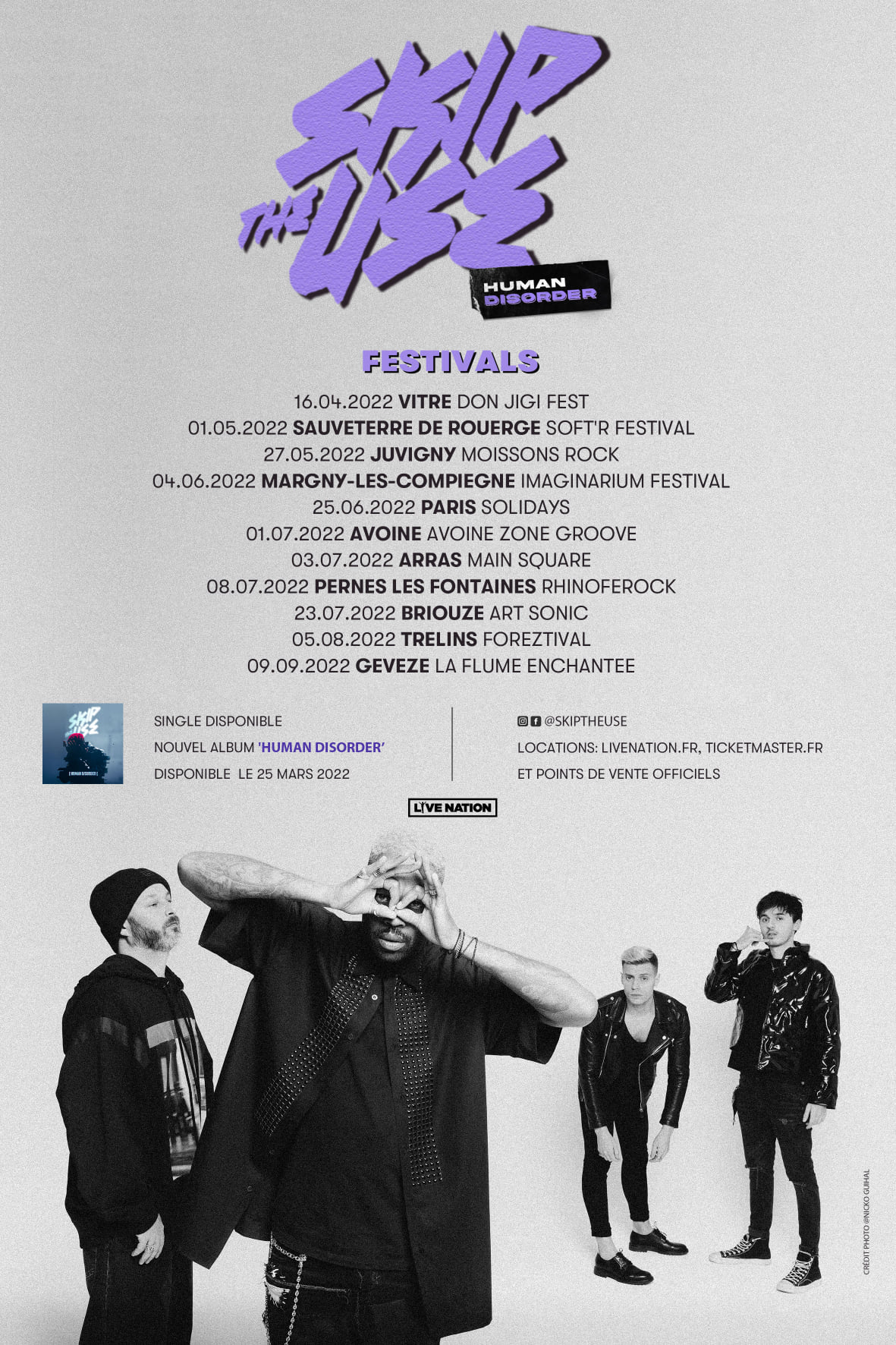 Retrouvez Skip The Use en tournée à partir du 16 avril 2022