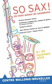So Sax ! Du 6 au 29 novembre 2014 Tarif plein : 8€ Centre de Wallonie – Bruxelles