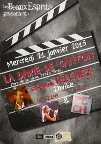 Les Beaux Esprits vous proposent un premier plateau composé de Flo Zinc, Pe’ch et Stéphane Richez pour débuter l’année 2015. Une nouvelle soirée dédiée à la chanson française pontuée de découvertes et de surprises. Stéphane Richez, vous connaissez? Bien sûr, il y a des vents de révolte, des petits sourires moqueurs, des jeux avec les mots, beaucoup de bienveillance, et, il y a même un brin de romantisme… Mais peut-on vraiment juger « sans connaître ». [embedyt] https://www.youtube.com/watch?v=JOQtmT3FQDo[/embedyt] Avec son énergie de comédienne, Flo Zink, auteure-interprète nous emporte dans sa douce folie sur des mélodies pop folk, bossa, tango, jazz… et nous fait partager son monde poétique et fantaisiste, un brin décalé. Pech veut dire colline en occitan… Une colline où l’on entend une chanson française aux accents blues, où bouillonne une poésie trempée dans les eaux de la Garonne et séchée aux quatre vents de l’errance. Généreux comme un repas partagé et surprenant comme une grande gamelle dans laquelle on aurait oublié de doser les hasards et les rencontres. [Visuel et source : communiqué de presse La Dame de Canton] |