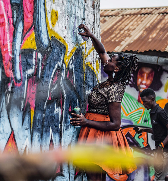 Dans toute l’Afrique, à coups d’immenses fresques dans les montagnes angolaises, de pochoirs à Nairobi, de calligraffiti au Caire… les street artists impriment leur marque d’un bout à l’autre du continent, repoussant les limites du genre, affirmant avec fierté leur identité culturelle et soutenant, par un travail souvent très engagé, les communautés locales.