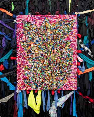 Né en 1994 à Accra, Ghana, Emmanuel Aggrey Tieku est un artiste pluridisciplinaire qui revalorise par sa pratique les textiles abandonnés pour créer des œuvres originales, entre sculptures et canevas. À travers des techniques de teinture et d’assemblage, il transforme des vêtements usagés, témoins de vies passées, interrogeant l’identité, la surconsommation et l’héritage colonial. À la croisée de l’histoire et de la durabilité, l’œuvre d’Emmanuel Aggrey Tieku engage une réflexion sur l’industrialisation et le changement climatique.