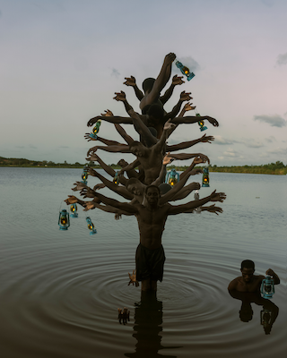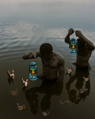 Nana Frimpong Oduro est un photographe et directeur artistique né en 1996 à Tema, Ghana, dont l’univers puise ses inspirations du surréalisme. L’artiste réalise des mises en scènes aux tonalités sombres dans lesquelles l’homme émerge de l’eau, incarnant fluidité, émotion et profondeur. Telle une poésie visuelle, Nana Frimpong Oduro matérialise la condition humaine, entre interdépendance, solidarité et espoir.