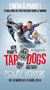 Mise en scène de Nigel Triffitt Avec Tap Dogs Du 18 mars au 13 avril 2014 Tarif carré or : 95€ // 1ère cat. : 65€ // 2ème cat. : 50€ // 3ème cat. : 35€ // Tarif jeunes moins de 26 ans 2ème cat. : 26€ Reservations en ligne ou par tél. 01 42 96 92 42 Theatre des Folies Bergère |