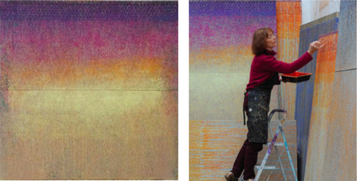 L’occasion pour le visiteur de découvrir ou redécouvrir l’œuvre de Béatrice Casadesus et de s’imprégner de ses ardentes et délicates « Pluies d’Or », résultat d’une méticuleuse réflexion intellectuelle, où chaque geste est mesuré. Béatrice Casadesus joue avec des superpositions de couleurs liquides qui créent comme des pluies colorées qui viennent atténuer l’empreinte des points et permettent au fond de la toile de réapparaitre progressivement, en réserve.