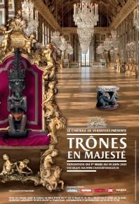 « Trônes en majesté » bénéficie de prêts exceptionnels, comme ceux consentis par le Vatican, la Cité interdite de Pékin, les résidences royales européennes (Madrid, Varsovie…). Dans une mise en scène adaptée, des sièges emblématiques, tels que celui du roi Dagobert, de Napoléon, de Louis XVIII, le roi restauré, ou la sedia gestatoria du pape Pie VII rencontrent des sièges taïnos, africains, chinois ou thaïlandais… Certains de ces trônes sont accompagnés des accessoires qui caractérisaient leur usage, tels les flabellas.