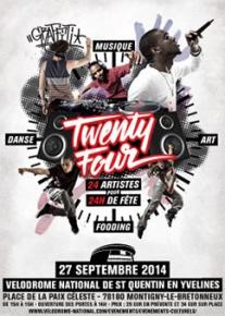 Twenty Four Avec Les Twins, Laure Courtellemont, DMX, MOP, Now Futur et Dj James Du samedi 27 au dimanche 28 septembre 2014 Tarifs : 39€ Réservation en ligne Durée : 24h Vélodrome National de Saint-Quentin en Yvelines RER C BUS n° 419 – arrêt Institut Franco-Japonais (Terminus) Navette gratuite au départ de Porte Maillot |