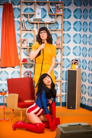 Ballet parlé, chanté, chorégraphié, Ultra-Girl contre Schopenhauer associe le quotidien ordinaire de la trentenaire aux scintillements d’un univers hollywoodien utopique.