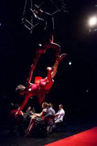 Dernier opus d’un collectif phare du cirque contemporain : Vestes noires, chemises rouges, manteau de fourrure, ils s’avancent côte à côte, mus par la même intensité, entre les mâts chinois, les trapèzes et les fils de funambules.