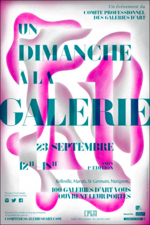 Organisé par le Comité Professionnel des Galeries d’Art, « Un Dimanche à la Galerie » est désormais inscrit dans l’agenda culturel des Parisiens. Ce rendez-vous convivial est une occasion exceptionnelle de profiter, un dimanche, d’un parcours artistique inédit dans les galeries d’art implantées dans de nombreux quartiers parisiens tels que Belleville, le Marais, Matignon- Haussmann, Saint-Germain …