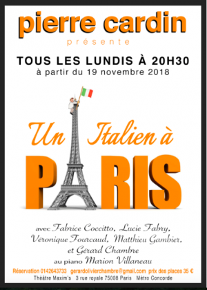 Une aventure en chansons, qui se déroule moitié en Italie, moitié en France. Prétexte, bien sûr pour découvrir ou redécouvrir, les grands airs italiens et les grandes mélodies qui racontent paris ! Mina, Eros Ramazzotti, Celentano, Pavarotti, Zucchero, Dalida…Piaf, Brel, Nougaro, Gainsbourg… Seront du voyage.
