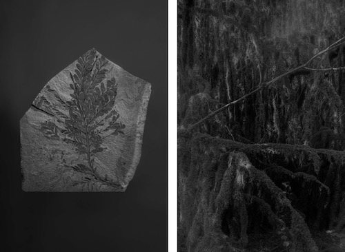 L’exposition s’articule autour de la mise en écho de deux corpus d’images, chacune étant la matérialisation photographique d’une temporalité plus qu’humaine – l’une témoignant de la mémoire ancestrale des forêts originelles du Dévonien, l’autre révélant le spectre vibrant de forêts contemporaines – chacune se réverbérant dans l’autre. L’espace d’exposition est alors pensé comme le corps mémoriel et vibrant – en couches subtiles entrelacées – de la forêt.