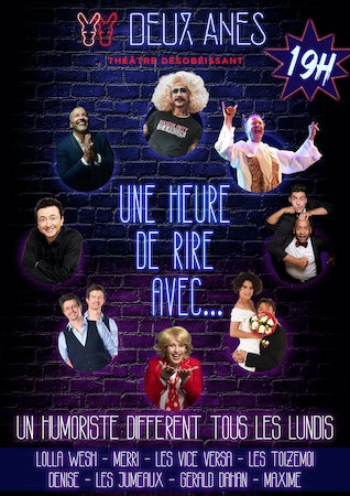 Chaque lundi, un humoriste, ou un duo d’humoristes investit la scène du Théâtre des Deux Ânes pour y jouer son spectacle !