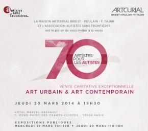 La Maison Artcurial Briest – Poulain – F. Tajan et l’Association Autistes sans Frontières ont le plaisir de vous inviter à la vente caritative Art Urbain et Art Contemporain. Plus de 70 artistes pour soutenir la scolarisation des enfants autistes. L’intégralité des revenus de la vente sera reversée à l’Association Autistes sans frontières qui met en place des programmes d’accompagnement pour permettre à des enfants autistes d’aller à l’école et leur offrir ainsi de vraies perspective d’avenir. Des oeuvres originales réalisées sur un cube en bois (20x20x20 cm), forme géométrique harmonieuse, équilibrée et solide, le cube renvoie à l’enfance et au premier jeu de construction…Déduction fiscale