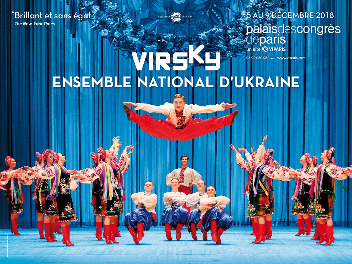 Le prestigieux Ensemble National Virsky, dirigé par le talentueux Myroslav Vantukh vient pour la première fois à Paris sur la scène du Palais des Congrès du 5 au 9 décembre 2018. Profondément ancré dans la culture ukrainienne, ce ballet promet un spectacle somptueux, romantique et coloré. Cette fantasmagorie rayonnante a bien l’intention de faire vibrer le public au rythme du pas chaloupé des danseurs.