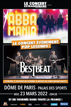 Pop Legends invite Abba Mania et The Bestbeat pour une tournée dans toute la France qui passe le 23 mars au Dôme de Paris et dans toutes les grandes villes. Avec Abba Mania et The Bestbeat, découvrez un spectacle exceptionnel qui séduira les fans d’Abba et des Beatles pour trois heures de musique live et de tubes incontournables.