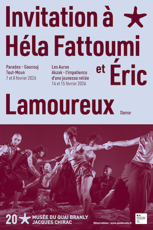 En février 2026, pour sa troisième carte blanche à des chorégraphes, le musée du quai Branly – Jacques Chirac convie Héla Fattoumi et Éric Lamoureux durant deux week-ends intenses de danse et de musique live.
