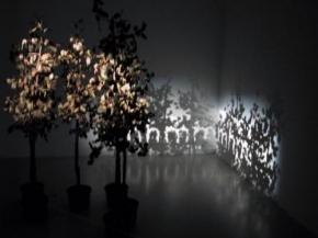 Fred Eerdekens crée des œuvres dans lesquelles les mots et les rêves semblent se rencontrer. Ses sculptures, ses installations, projettent leur message au mur par un jeu d’ombres portées. Il fait ainsi naître des images fantômes sans présence réelle, dont l’ombre seule dessine les lettres, comme un souvenir onirique. Le mot se fait jour comme par enchantement sans que le spectateur ne puisse tout à fait déterminer son origine. Le langage n’est plus présent matériellement mais il saisit le regard et la curiosité.