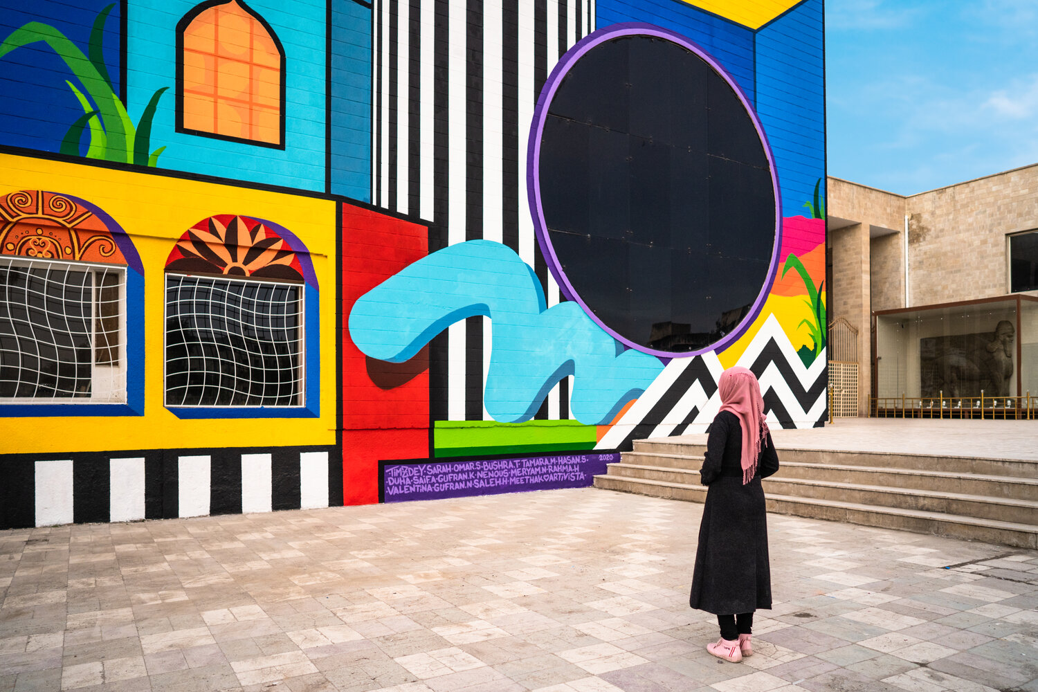 Après avoir participé à l’échange organisé par Artivista au Brésil en 2018, Tim Zdey rejoint avec enthousiasme le nouveau projet de l’association à Mossoul. Si c’est sa pratique du graffiti qui est à l’origine de sa peinture, il s’en éloigne depuis quelques années pour se concentrer sur le développement d’un univers plus personnel. Les influences pop, de peintres de l’art moderne et du mouvement Opart se croisent pour nous inviter dans un monde chatoyant empreint d’une énergie positive.