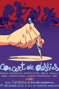 Les Concerts de dessins font figure d’ovnis dans l’univers des arts de la scène. Ils sont en effet les seuls spectacles à entremêler musique et bande dessinée. C’est en 2005, lors de la 32e édition du Festival international de la bande dessinée, que les premiers Concerts de dessins sont lancés à Angoulême. Ils ouvrent une perspective alors totalement inédite : faire du concert un moment de bande dessinée exceptionnel regroupant le registre des arts de la scène et celui du graphisme, très loin des ambiances habituelles de la lecture.