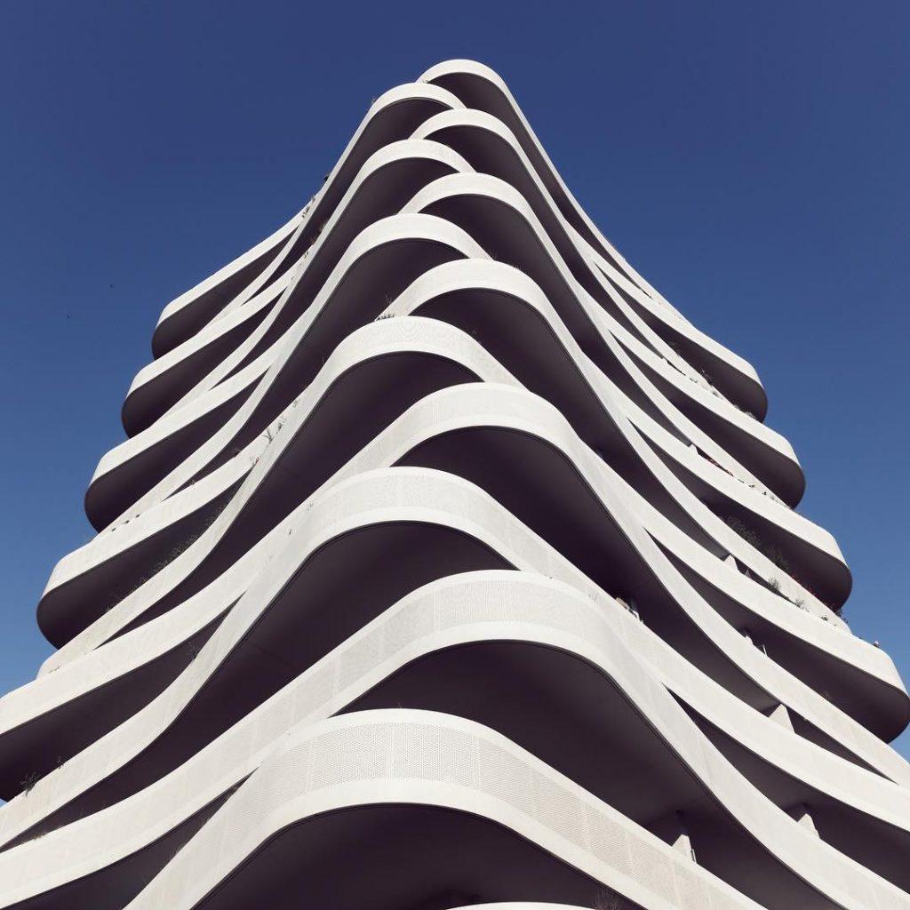 Ce quatrième compte nous vient tout droit de Hamburg en Allemagne et comptabilise 233K followers. Le photographe, Sebastian Weiss, prend des bâtiments en photo et cherche à retenir notre attention sur les courbes, les contre-courbes, les obliques, les diagonales, et les volumes. Le tout, immortalisé dans un format carré, qui représente d’un côté le cadre et la règlementation, de l’autre, l’originalité du bâtiment photographié. Toujours accompagné d’un ciel bleu en arrière-plan, les photos apparaissent comme des images peintes ou dessinées.