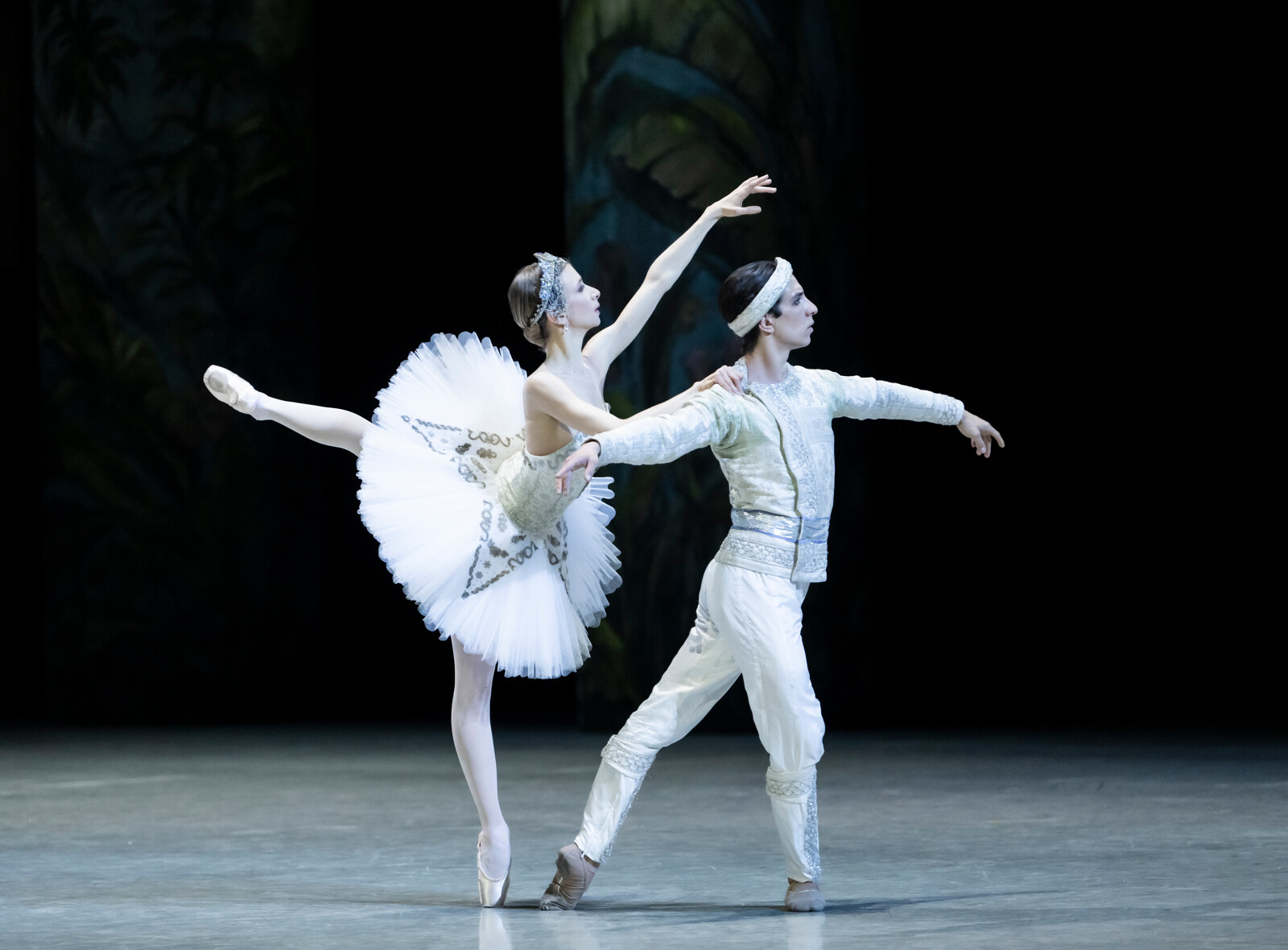 La première version de La Bayadère a été créée en 1877 par Marius Petipa pour le théâtre impérial de Saint-Pétersbourg. Depuis cette création, les amours tragiques de la danseuse sacrée Nikiya avec le guerrier Solor ont donné lieu à de nombreuses versions, plus ou moins fidèles à l’œuvre d’origine. La version de Rudolf Noureev reprend les éléments du ballet de Petipa qu’il avait dansé tout jeune soliste au Kirov, tout en y apportant quelques évolutions dans la chorégraphie et la dramaturgie. La danseuse étoile Myriam Ould-Braham fait partie des titulaires du rôle de Nikiya pour cette série. Sa danse tout en raffinement fait d’elle l’incarnation d’une danseuse sacrée poétique et tragique. Avec elle, la bayadère est l’amoureuse pure, sacrifiée sur l’autel des convenances et des ambitions bien terrestres. Francesco Mura est un Solor très aristocratique. Premier danseur depuis 2020, il s’agit là d’un de ses premiers grands rôles. Son style, en élégance et en retenue, s’accorde bien avec Myriam Ould-Braham : les deux artistes nous offrent des pas de deux particulièrement émouvants.