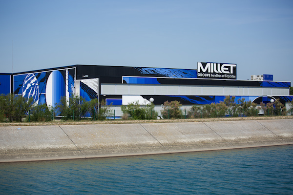 En juin dernier, l’artiste AEHSO, de son vrai nom Adrien Ledoux, a réalisé une fresque de 1000m2 pour le Groupe Millet à Lançon-Provence dans les Bouches-du-Rhône, en partenariat avec la Galerie Sabrina Lucas (Nantes).
