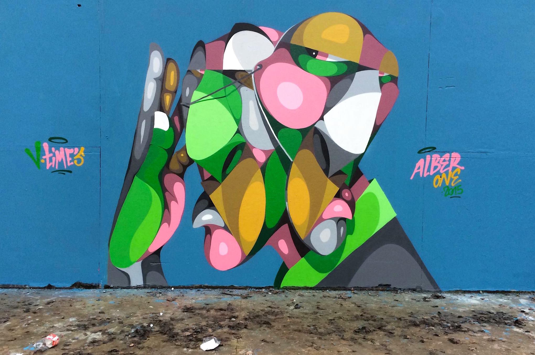 Alber, graffeur et figure du street art girondin, fait voyager ses personnages aux quatre coins de la France. Leurs couleurs vives et leurs lignes multiples se rencontrent de manière percutante, nous invitant à ouvrir l’œil et à nous laisser surprendre au détour d’une rue.