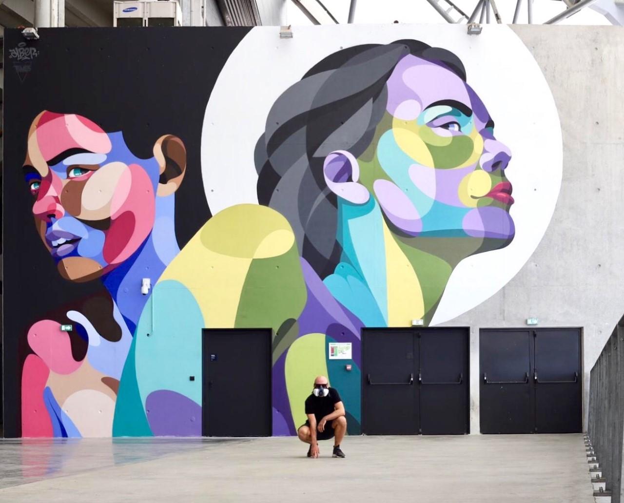 Je pense à la dernière pièce que j’ai faite à Paris, sur un gros mur de 30 mètres de long sur 5 mètres de large. J’ai travaillé dessus pendant sept jours avec une nacelle. C’était une belle expérience, puisque c’était l’un des plus gros murs que j’ai pu faire. On s’est réunis avec l’association Osaro, nous étions sept artistes à nous partager cet énorme mur, avec chacun 30m x 5m à disposition.